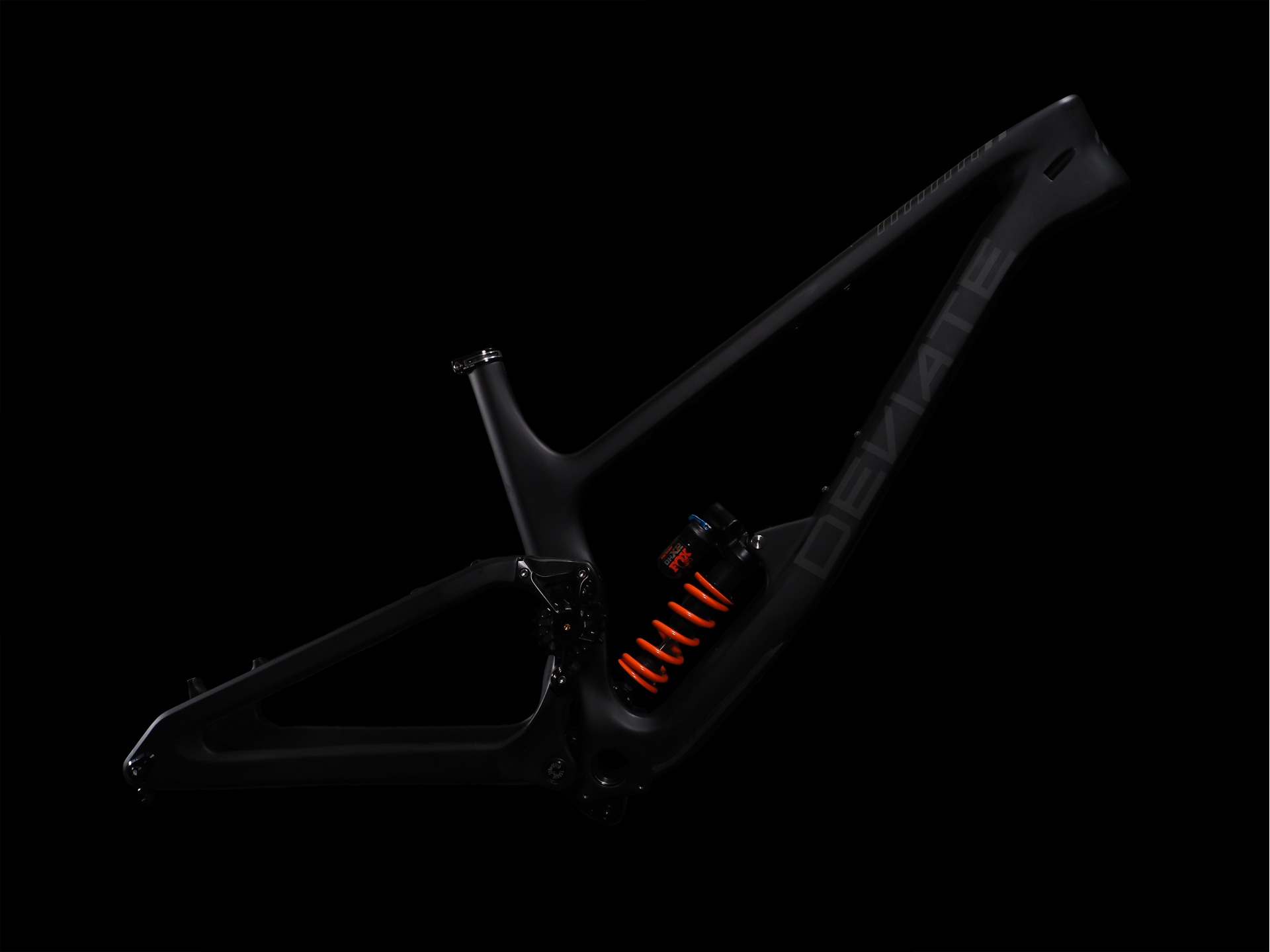 Deviate’s high pivot point, and the careful idler placement, mean the suspension performance on the Highlander is the best of all possible worlds. The rearward axle path lets the bike flow over rough terrain, and as the idler location controls anti-squat, the Highlander has negligible pedal kickback and a deliberate anti-squat curve which eliminates pedal induced suspension bob. The unique kinematics of a high pivot point design maintains chassis stability and geometry under heavy braking, meaning aggressive riding is rewarded.