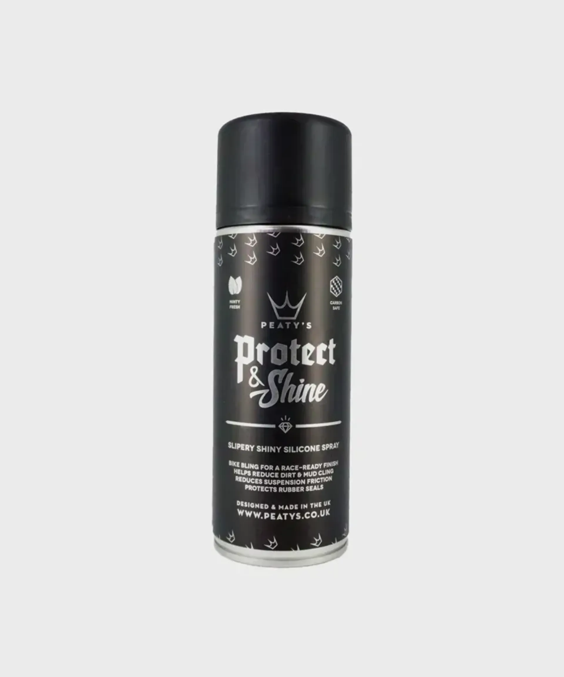 Peaty's Protect & Shine brings your bike back to a race-ready finish. Spray onto paints, metals, plastics or carbon parts to reduce friction and mud.